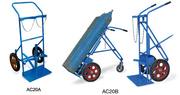 ● 支撐轉(zhuǎn)向輪易于運(yùn)輸 ● 裝載氣瓶的支架由安全鏈條保證 ● 適用于雙氣瓶 ● 堅(jiān)固的帶滾柱軸承橡膠輪
