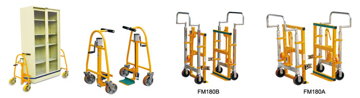 ● 用于搬運家具、工具柜等 ● FM60由萬向輪來達到轉向 ● FM180兩款定向輪設計,通過手把來達到轉向 ● 成對銷售