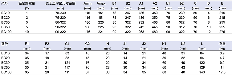 ● 工程力學(xué)優(yōu)化設(shè)計(jì),增加載荷分布面積 ● 適用于各類(lèi)工字梁 ● 符合美國(guó)ANSI/ASME安全標(biāo)準(zhǔn)